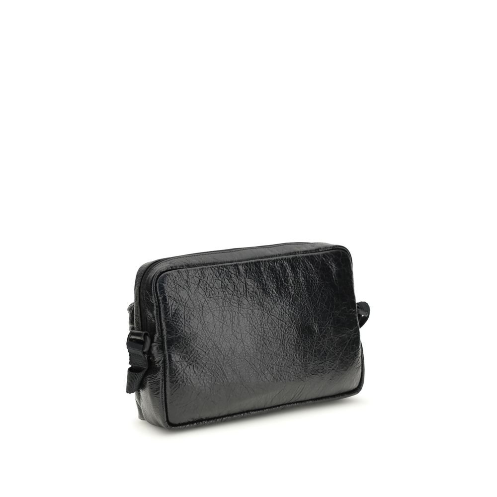 The Explorer Bag by Balenciaga is crafted from soft lambskin leather and features a functional, contemporary design. It includes a top zip pocket and a front zip pocket, ideal for keeping essentials organized. The Balenciaga logo is displayed on the front, while the adjustable and removable shoulder strap allows for versatile wear. Silver-tone hardware adds a sleek, modern finish to the overall look.