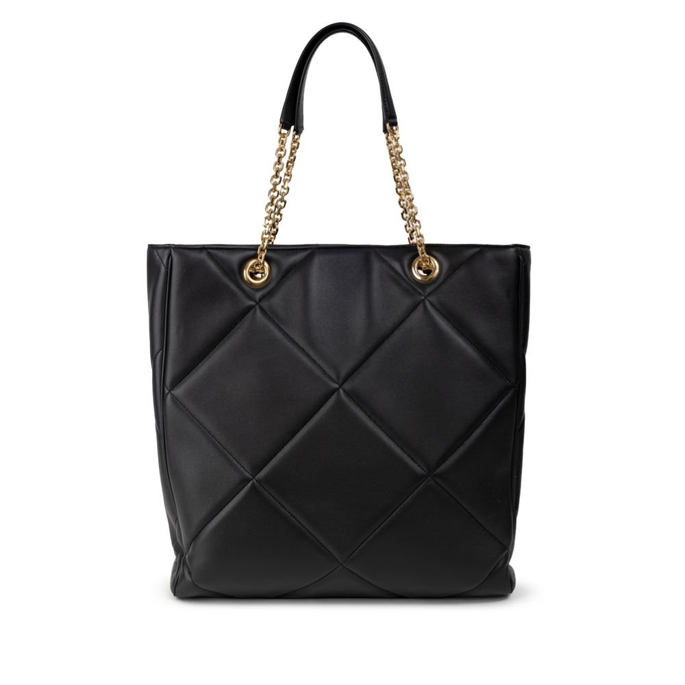 Bolso tote Dolce & Gabbana Matelassé de piel negra. Dos asas con cadenas doradas, un compartimento, cierre con botón a presión, bolsillo interior y bolsillo con cremallera. Etiqueta metÔlica dorada con el logotipo aplicado en la parte delantera.