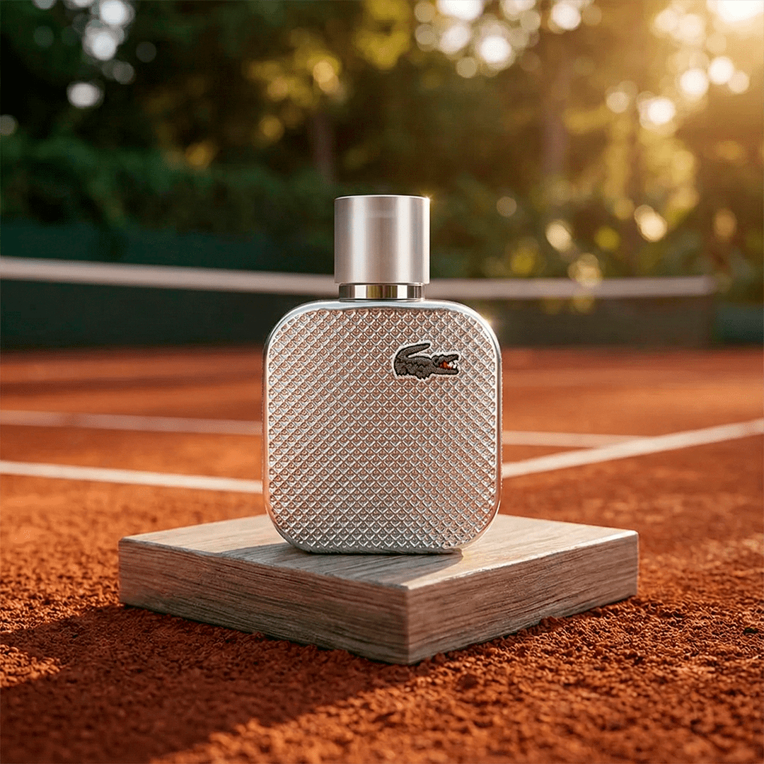 Con el icónico cocodrilo bordado en su diseño, el frasco de L.12.12 Gris Plata exhibe la textura emblemática de algodón «petit piqué» del famoso polo, realzada con un sorprendente acabado metálico plateado que rinde homenaje a la raqueta de tenis de acero inventada por René Lacoste.