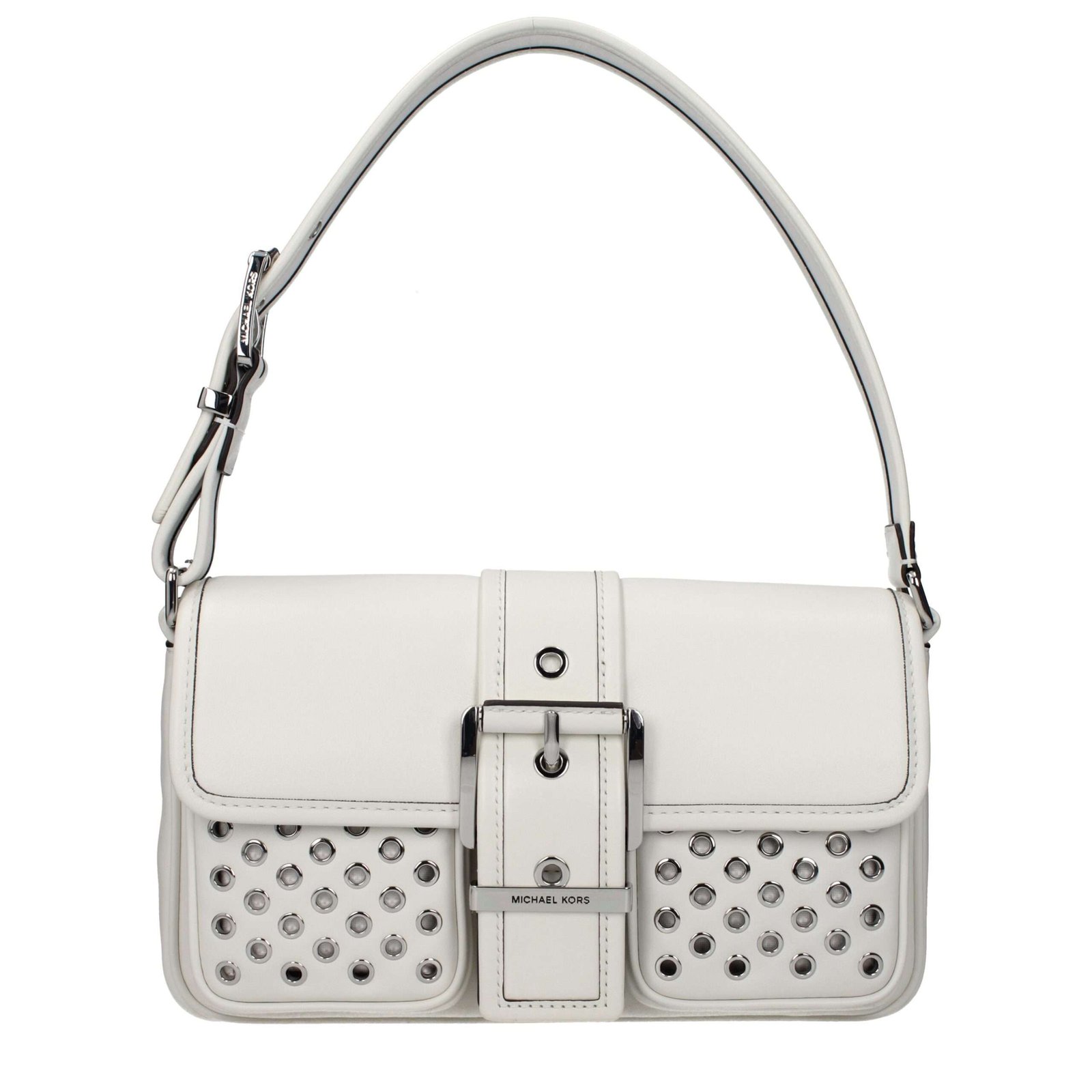 The product with MPN 30R5SBAL2IOPTICWHITE and code F85584 leather in white is a shoulder bags designed by Michael Kors. It has features like front logo, adjustable handle.